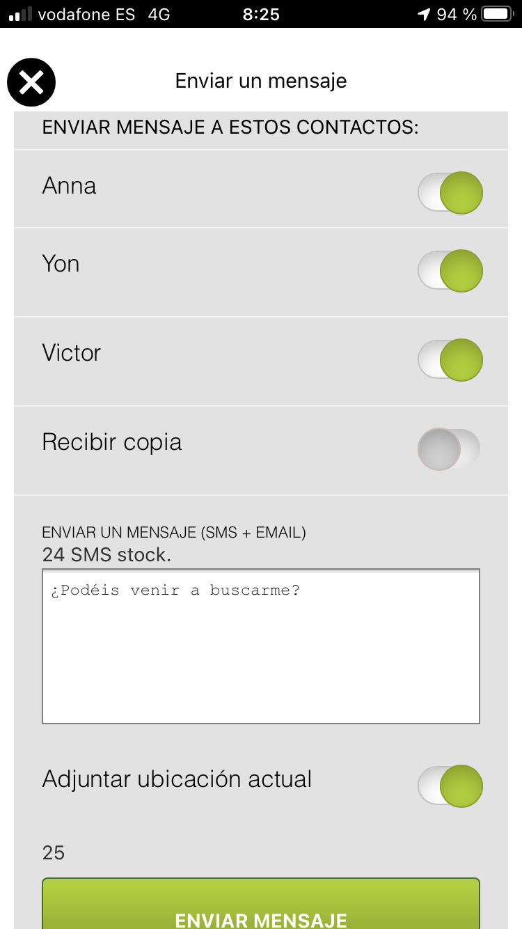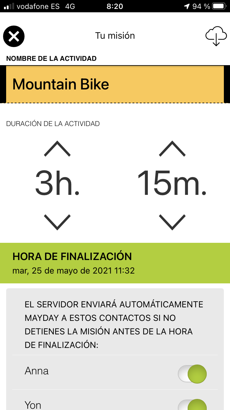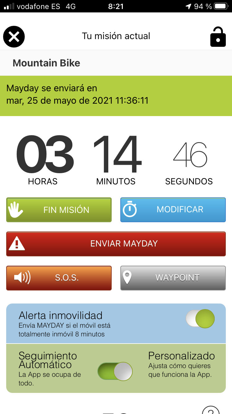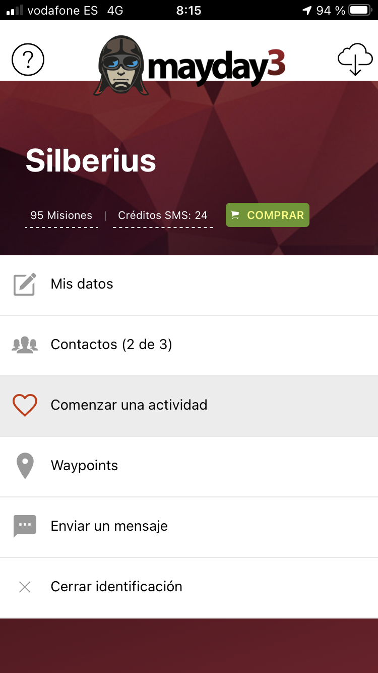 La App Mayday3 recopila los siguientes datos del usuario cuando está utilizándola:
